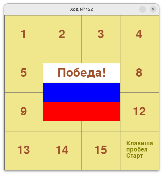 TITLE = "Головоломка 15"                # обновляем заголовок окна